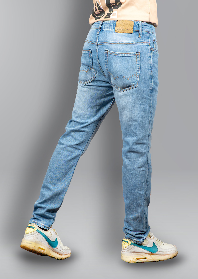 These American Eagle jeans are a perfect blend of style, comfort, and versatility. Crafted from high-quality denim, they feature a modern slim-tapered fit that enhances the silhouette while ensuring all-day comfort. The light blue wash, paired with subtle fading and whiskering, gives them a trendy, vintage-inspired look. The back pockets showcase signature stitching details, adding a touch of character, while the leather brand patch on the waistband reinforces their premium appeal. Designed for effortless styling, these jeans can be dressed up or down, making them a must-have staple for any wardrobe. Whether paired with sneakers for a casual vibe or boots for a more refined look, these jeans deliver timeless fashion with a contemporary edge.