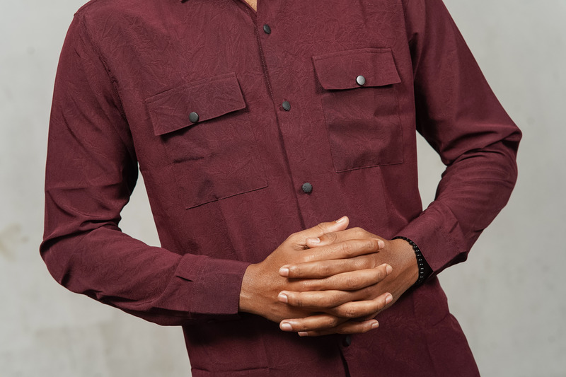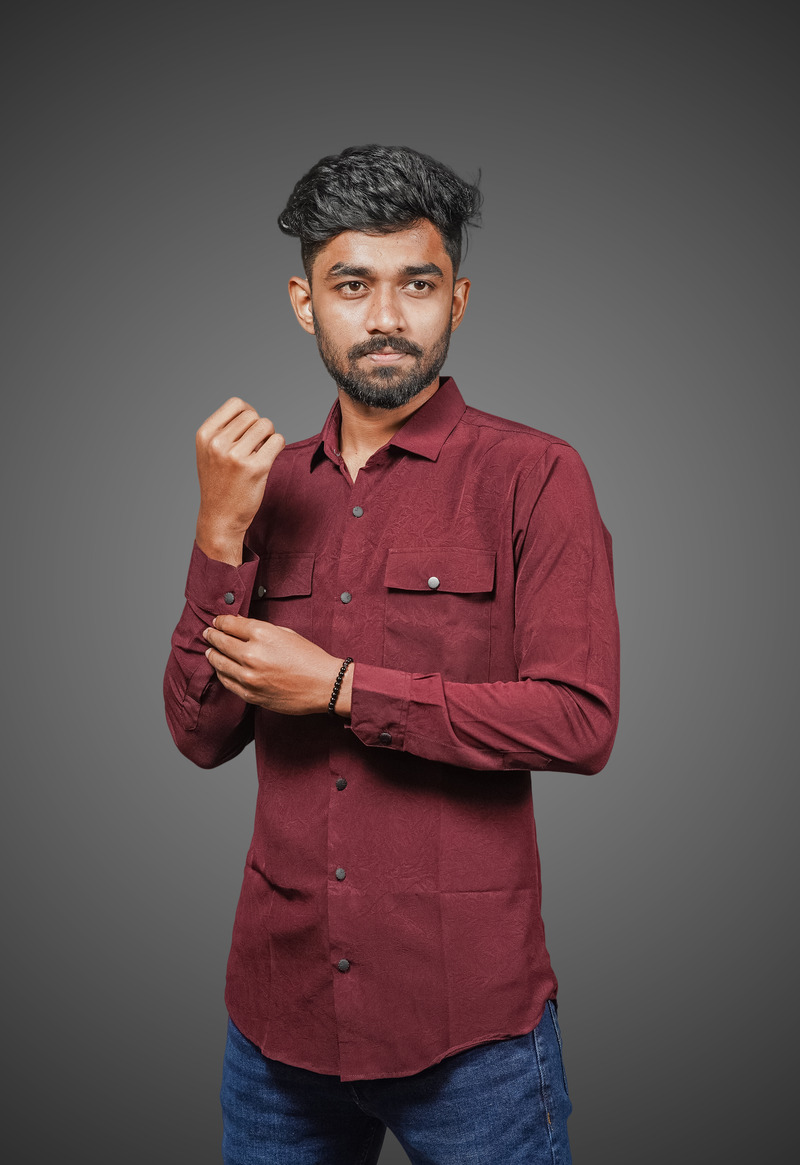 This maroon mesh fabric shirt is a perfect blend of style, comfort, and modern design. Crafted from breathable mesh material, it ensures a lightweight and airy feel, making it an excellent choice for all-day wear. The shirt features a classic button-up front, adding a touch of sophistication, while the two flap pockets with secure button closures provide both functionality and a stylish edge.