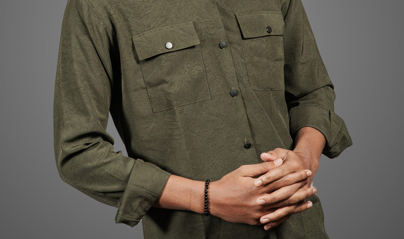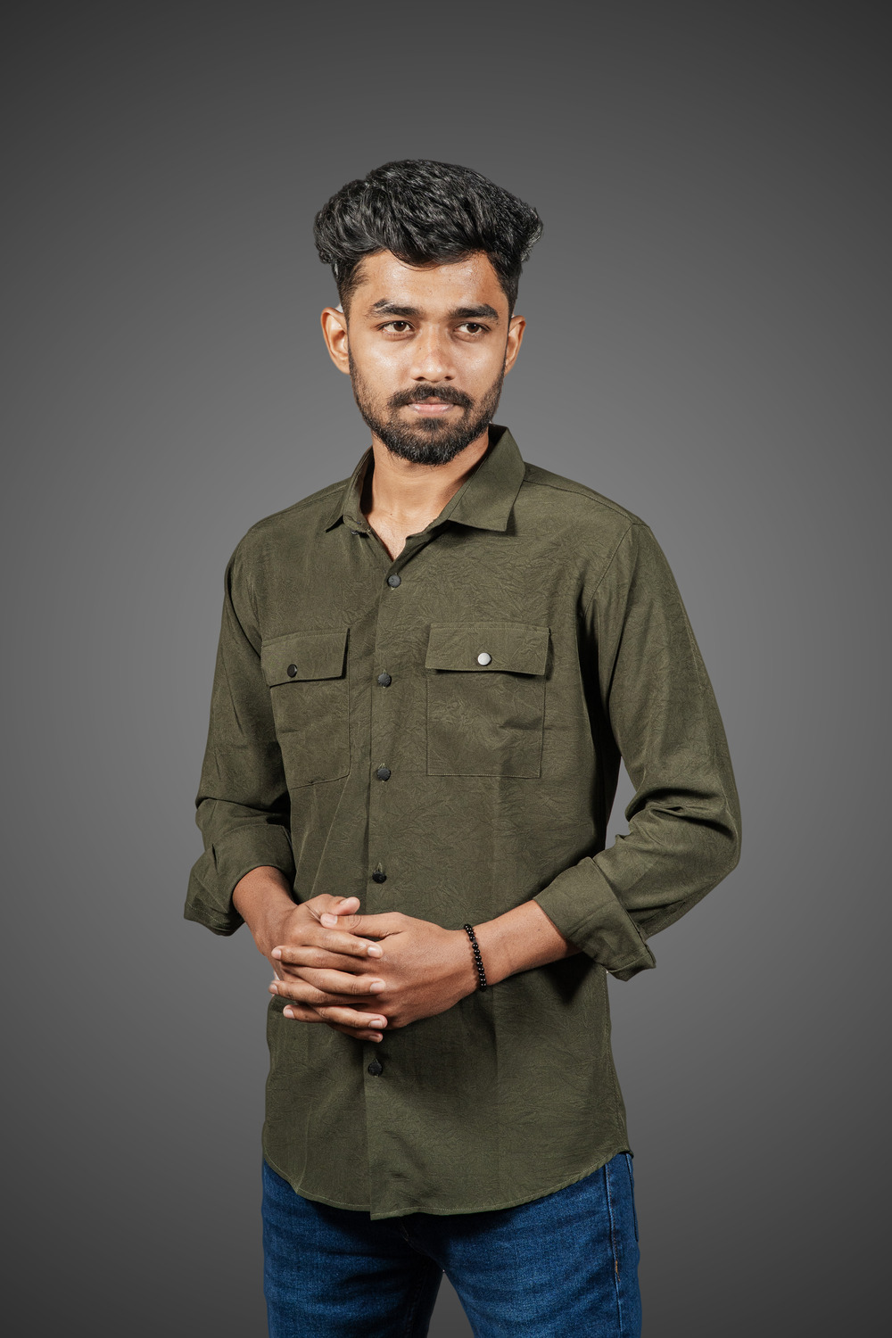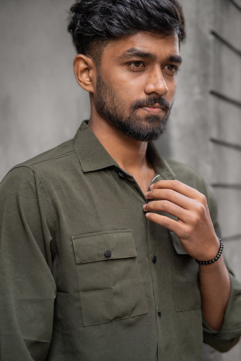 This olive green mesh fabric shirt is a perfect fusion of style and comfort. Designed with a breathable, textured material, it ensures a lightweight feel while maintaining a sleek, modern look. The shirt features a classic button-up front, a pointed collar, and two flap pockets with secure button closures for added functionality. Its long sleeves with buttoned cuffs offer versatility, allowing for both a polished and relaxed style. The deep green shade adds a refined touch, making it ideal for casual outings or semi-formal occasions. Pair it with jeans or tailored trousers for an effortlessly stylish look.