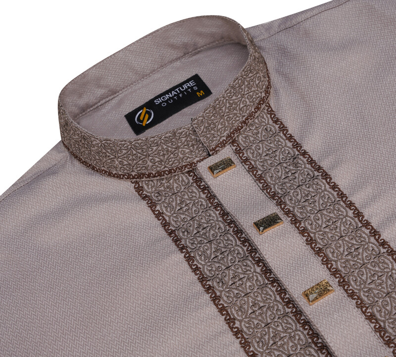 - Intricate embroidery work along the neck, chest, and wrists
