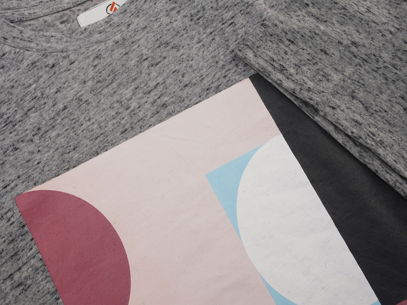 This premium Ash Color t-shirt showcases a modern, abstract geometric design on the front, blending soft pastel and bold color blocks. Stylish and comfortable, it’s an ideal choice for summer casual wear with a unique artistic flair.